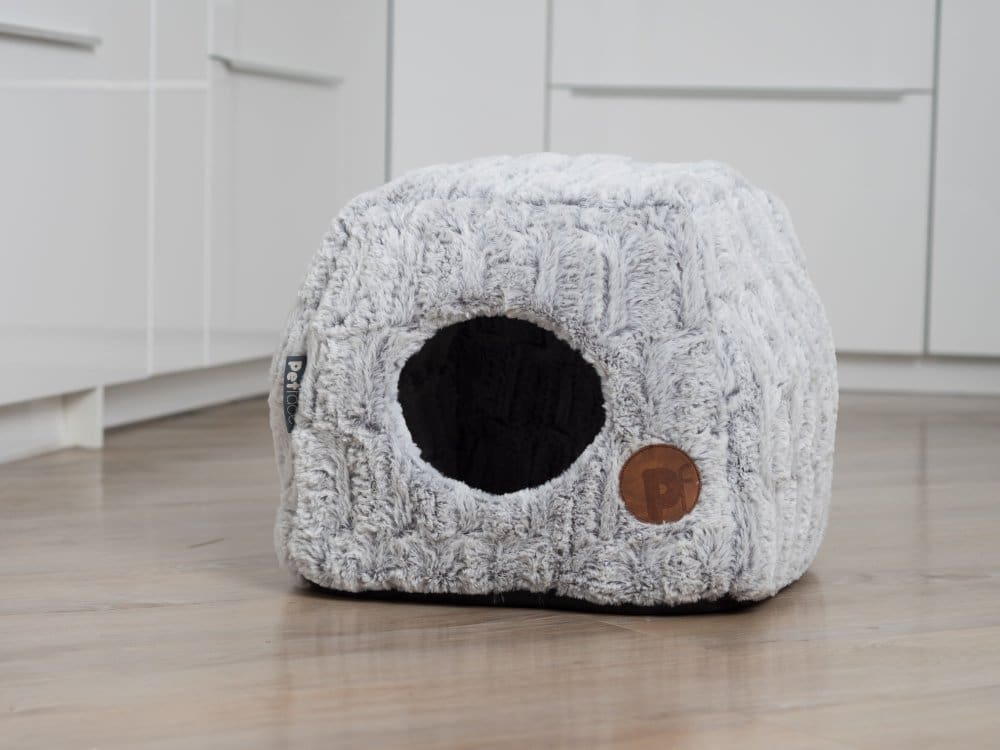Petface Bamboo Plush Cat Cave 2 in 1 design. Beautiful soft material that can be used as a cave to give your kitty a sense of security – perfect for new arrivals. The bed can also be pushed down to create an open square bed for the cats who prefer to snuggle up in an open bed.