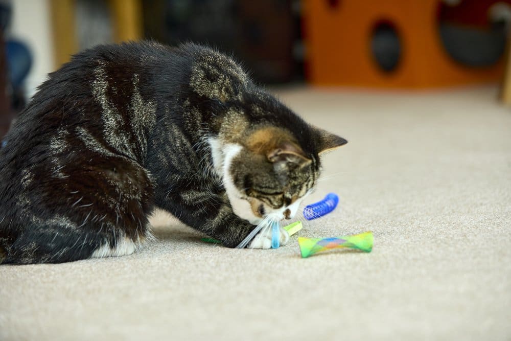 Put a spring in your cat’s step with these colourful, bouncy springy cat toys. Your cat will enjoy knocking, pushing and chasing the springs around, they work especially well on hard floors and surfaces. Some cats may enjoy picking them up and carrying them around.