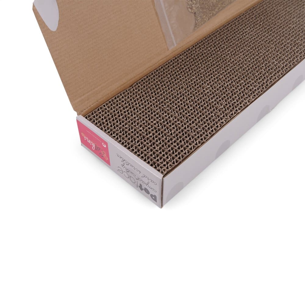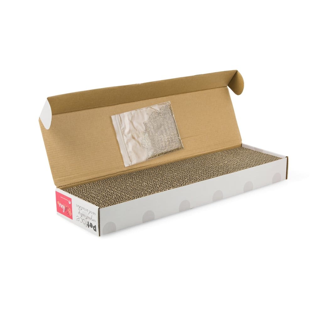 Petface Compact Catnip Card Scratcher for cats with catnip for extra ‘claw attention’. This scratcher will provide your cat with entertainment at the same time as helping to maintain their claws in a great condition. This toy is not indestructible and will eventually become susceptible to ‘chew’ damage and the longevity of any pet toy will be dependent on the ability and dexterity of your pet.