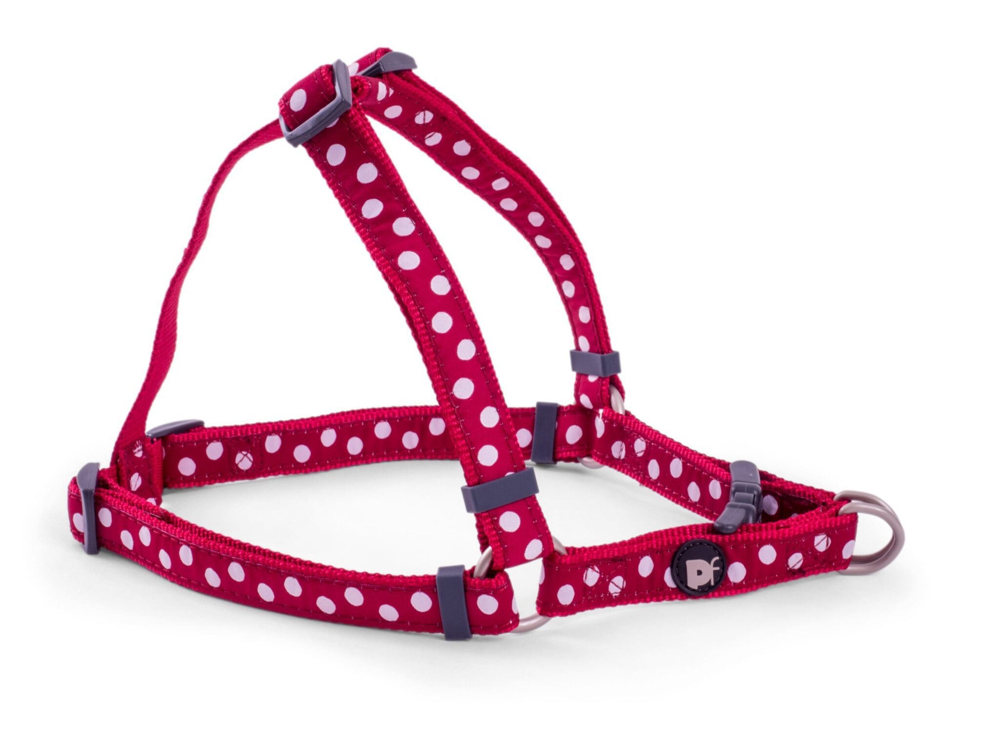 Petface cherry/white dog harness is made of high quality nylon material. Ideal for dogs prone to pulling and keeps your dog under control. The quick snap buckles make the harness easy to put on and remove. Provides maximum comfort for the dog. Perfect fit and comfortable to wear.