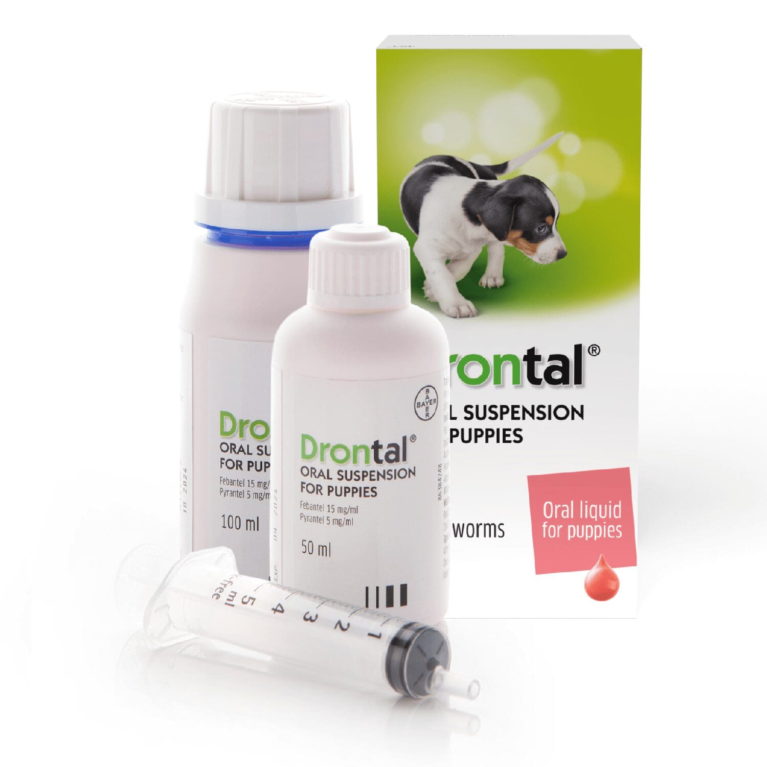 Drontal Puppy Liquid Wormer works fast to kill roundworms, hookworms, and whipworms, giving you peace of mind that you are helping keep your puppy and family away from internal parasites. For puppies from 2 weeks of age and weighing over 0.6kg.