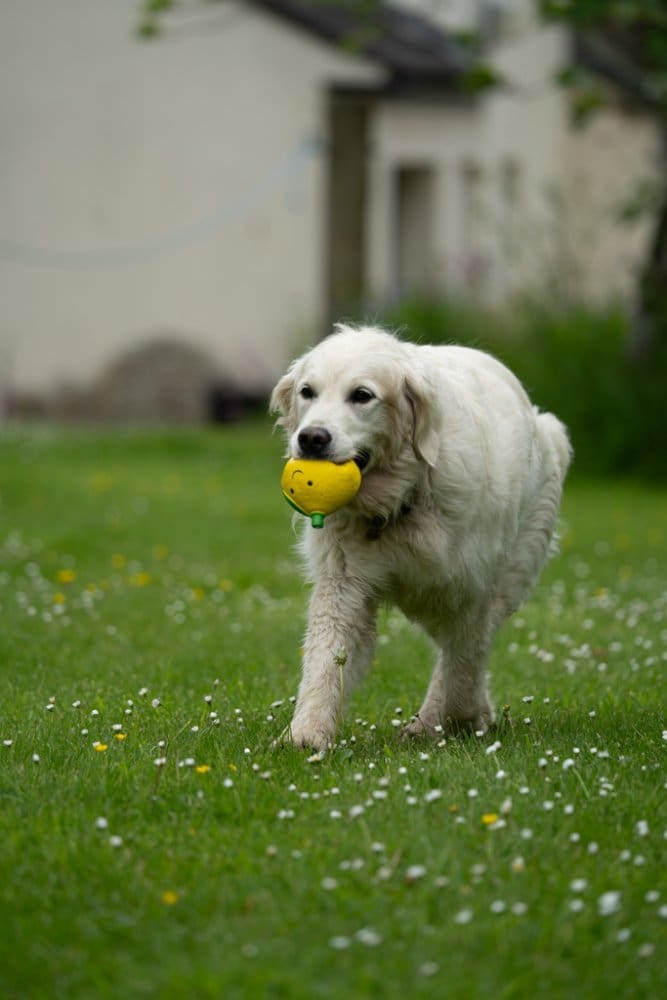 Petface Lemon Latex Dog Toy with a cute smiley face and a built in squeaker. Perfect for playful dogs. Great for the game of fetch and encouraging your pet’s interactive playing and training. Cute, strong and durable. Available in large size.