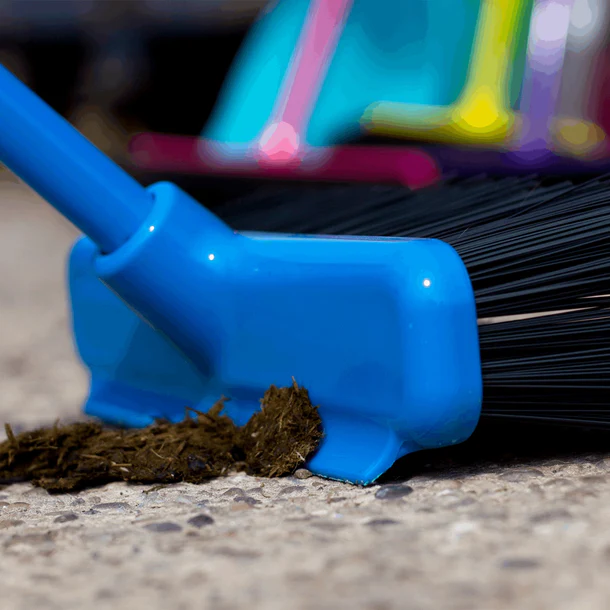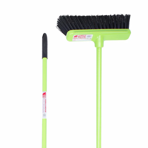 Length: 157cm x Width: 30cm x Depth: 7cm Full Product Description The 30 cm Gorilla Broom®, comprising broom head and sturdy, screw-in handle, is designed to make all those daily cleaning and tidying tasks around the yard, stable or site, a bit easier for the user. Effective in both dry and wet conditions, this is a high-performance broom that will remove even the most stubborn of debris, dirt and dust! The 30 cm Gorilla Broom is a popular, multi-purpose broom, with a slightly smaller broom head providing more options for use and reach. Featuring an integrated, and very tough scraper blade, the 30 cm Gorilla Broom® will help you tackle even the most challenging ‘stuck bits’ without having to get down on your hands and knees. As is the case with other products in the Gorilla Broom® range, the 30 cm brush head has a special anti-clog channel which cuts down on flying dust for a cleaner, sharper sweeping action. This avoids unnecessary clumping, contamination and build-up of dirt. Each Gorilla Broom® is manufactured from eco-friendly materials which are kinder to the environment and coated in a UV-resistant material, preventing it from fading, even after extreme sun exposure. Whether cleaning conditions are dry, wet, and even if a water spillage has occurred dampening the floor, this broom will outperform other alternatives as it has a non-porous, polymer head and bristles, designed to soak up 0% fluid. Currently used in Equine, Agriculture, Education, Building and Gardening environments, it’s a first choice for regular cleaning chores, as well as for removing more troublesome debris and muck. This broom is available in 6 vibrant colours, so there’s plenty of choice when it comes to finding a product that suits your needs.