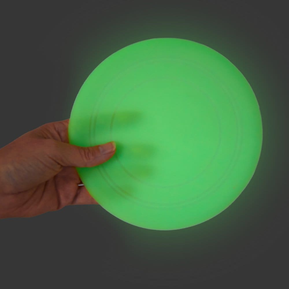 The silicone material is water-resistant, allowing for easy cleaning. Simply rinse the frisbee under running water or wipe with a damp cloth. Take care when using the toy in low light settings and be mindful of your surroundings. Not suitable for large breed dogs or strong chewers. Pets should be supervised when playing with toys. This toy is strong but not indestructible and will eventually become susceptible to chew damage. Examine regularly for wear and replace if any damage could represent a health hazard. THIS IS NOT A TOY KEEP OUT OF REACH OF CHILDREN.Brand
