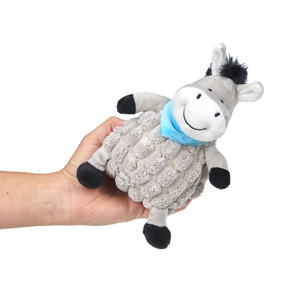 A plush farmyard themed dog toy, dumpy donkey is dressed in cute blue neckerchief. The perfect playmate and cuddly companion all in one! Durable toy with built-in squeaker for long-lasting, interactive fun. Great as a comforter for puppies and older dogs alike. Develops play skills and keeps your pet busy and satisfied. Pets should be supervised when playing with toys. This toy is strong but not indestructible and will eventually become susceptible to chew damage. Examine regularly for wear and replace if any damage could represent a health hazard.Brand
