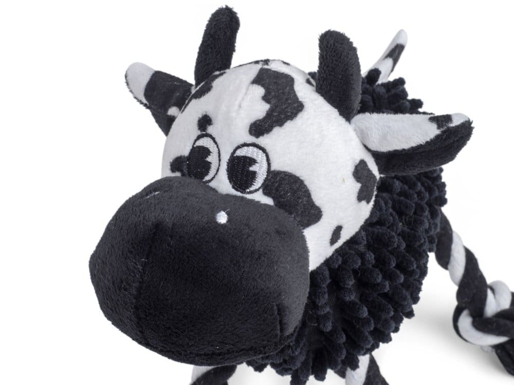A fun farmyard-themed dog toy, the noodle cow is the perfect playmate for your playful poooch. Soft textured plush toy with rope cord legs. Durable toy with built-in squeaker for long-lasting, interactive fun. Great as a comforter for puppies and older dogs alike. Helps to develops play skills and keeps your pet busy and satisfied. Pets should be supervised when playing with toys. This toy is strong but not indestructible and will eventually become susceptible to chew damage. Examine regularly for wear and replace if any damage could represent a health hazard.Brand
