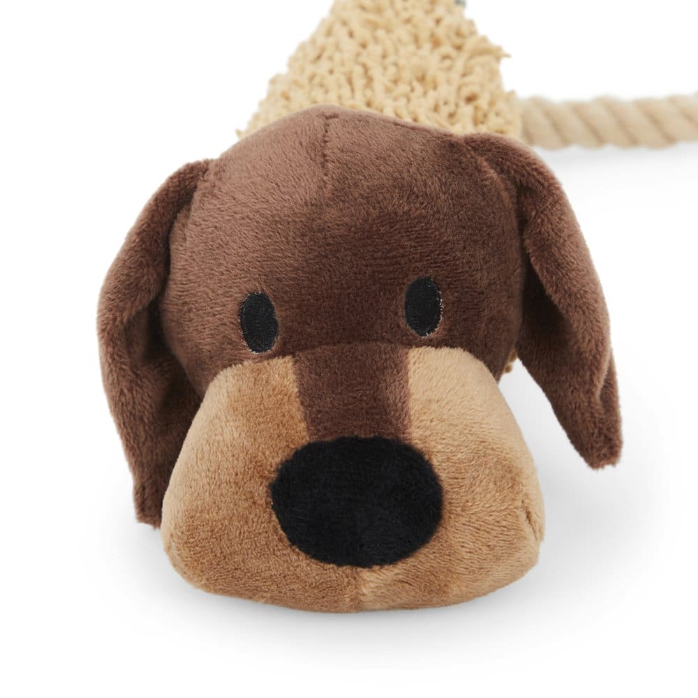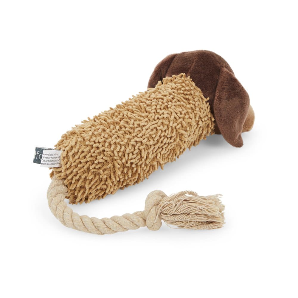 Petface Buddies Shaggy Dog Plush Dog Toy, multi-textured, soft, cuddly and super cute with a squeaker inside for added fun. The rope tail can also help to clean your pups teeth, reducing plaque build up and promoting healthy gums. Great for playing fetch and encouraging exercise or could be your best friends new favourite snuggle buddy.