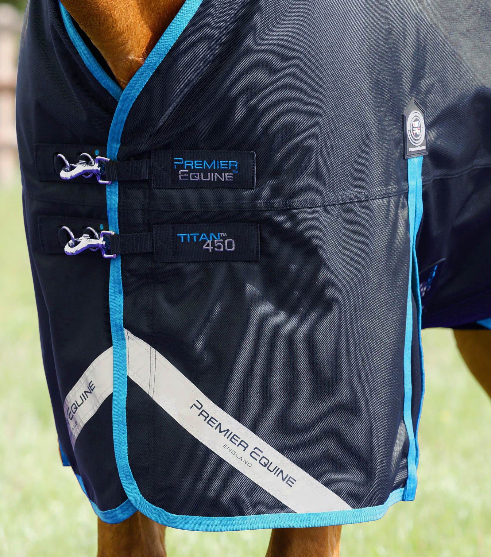 • Designed with meticulous attention to detail, the Titan 450g Original Turnout Rug is cut 2-4” in front of the wither allowing the neckline to fall comfortably in front of the shoulder. The Titan features a mid-height patented elasticated shoulder gusset, providing enhanced fit and freedom of movement in the field. Reflective strips at the front and rear of the rug increase visibility in low-light conditions. The strategically placed chest-clip closures, surcingle bars, and hardware are crafted from high-quality stainless steel for long-lasting functionality.