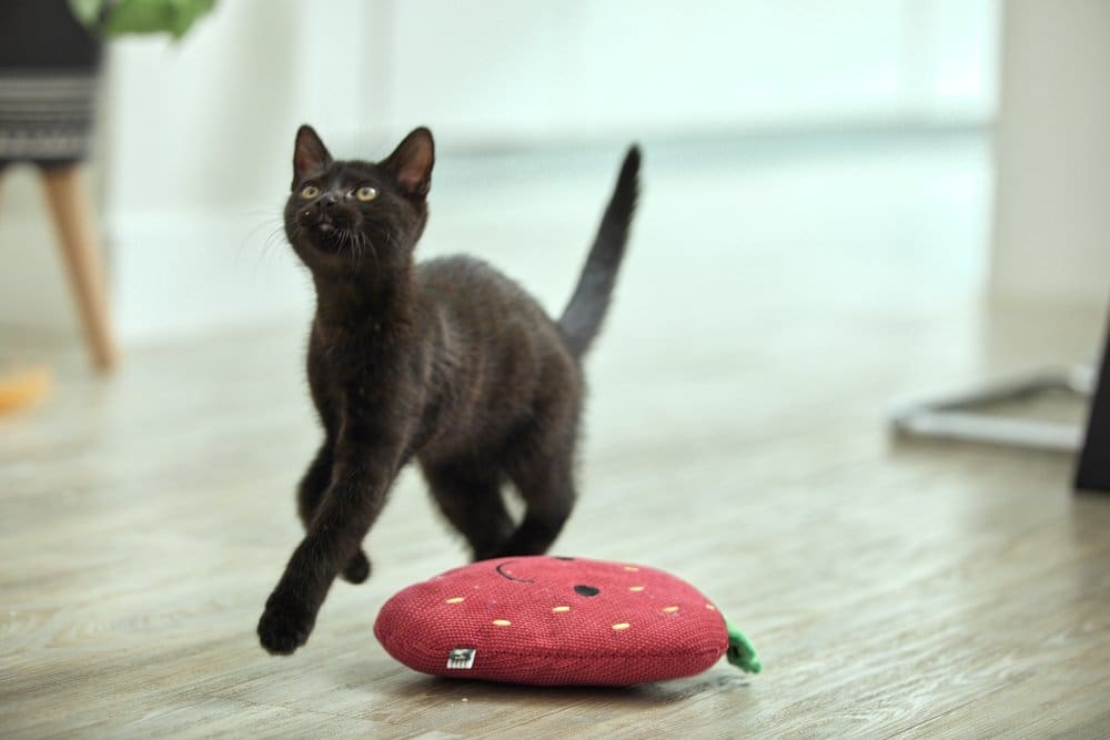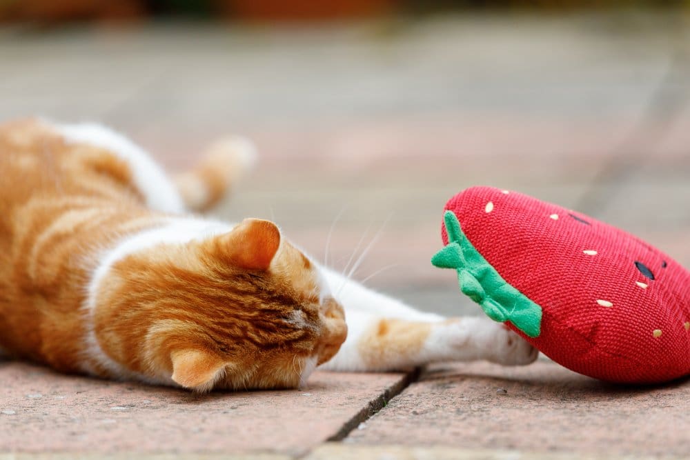 Fun & fruity plush strawberry toy. Textured material to develop your cat’s sense of play. Plush material makes the perfect cuddly companion. With catnip inside to stimulate your cat’s senses. Super cute design complete with smiley face.  Pets should be supervised when playing with toys. This toy is strong but not indestructible and will eventually become susceptible to chew damage. Examine regularly for wear and replace if any damage could represent a health hazard.