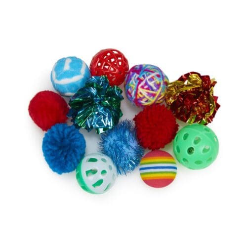 CATKINS CAT PLAY PACK – 12 ASSORTED BALL TOYS